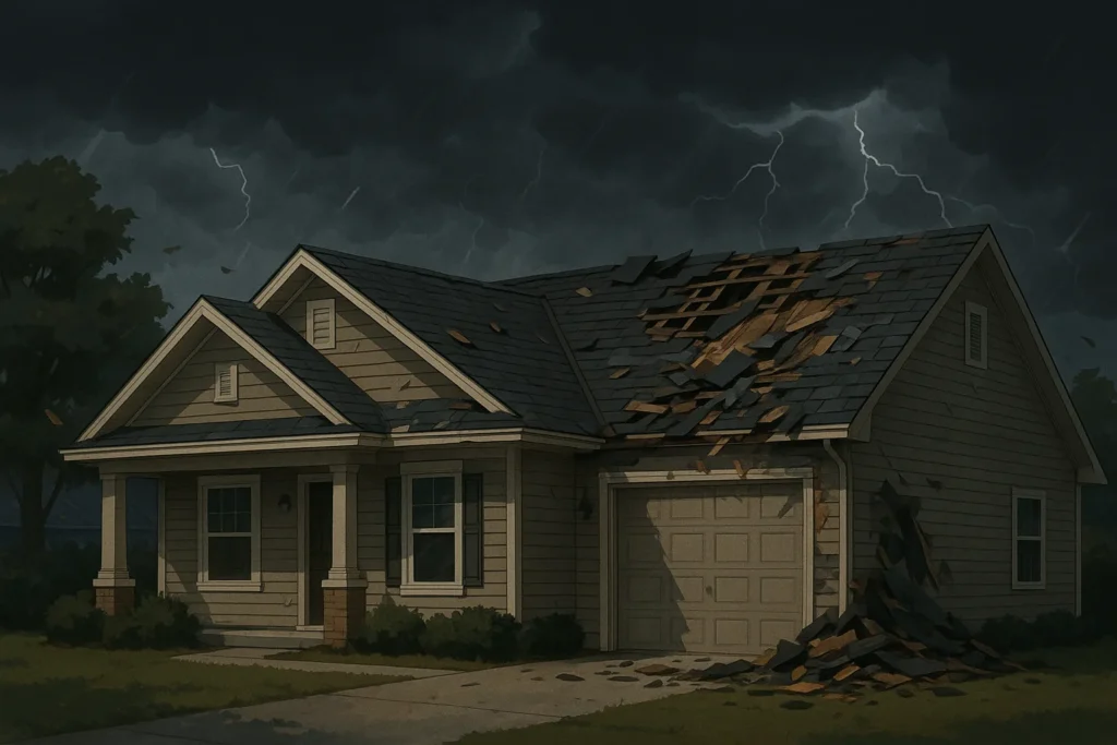 Sudden storms can cause severe roof damage. High winds can rip shingles off, hail can bruise shingle granules, and fallen branches can puncture decking.